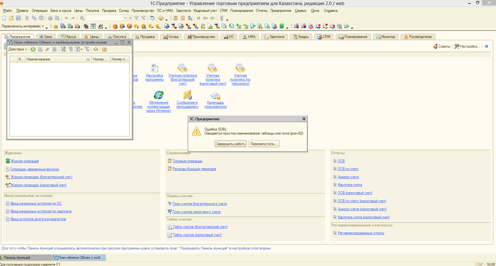 {ОбщийМодуль.СоединенияИБГлобальный.Модуль(45,3)}: Процедура или функция с указанным именем не определена (ЗавершитьРаботуСистемы)