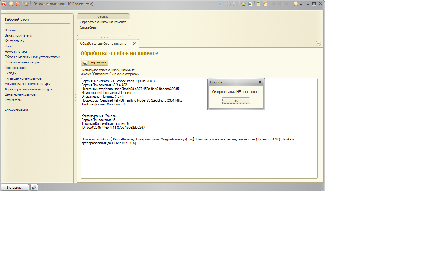 После ввода кода активации, мобильное устройство с регистре создается с планом обмена. Ошибка при десериализации